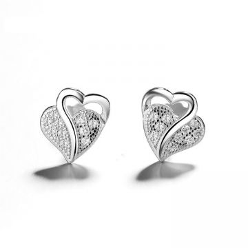 Cercei argint 925, JW725, model inima, placati cu rodiu
