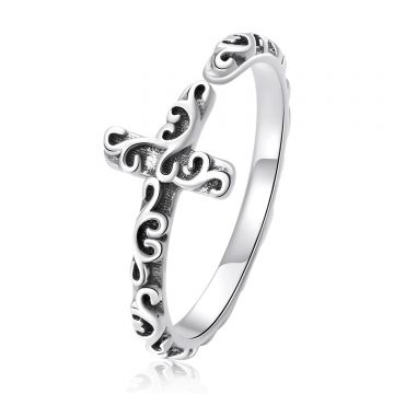 Inel din argint Faith Cross black