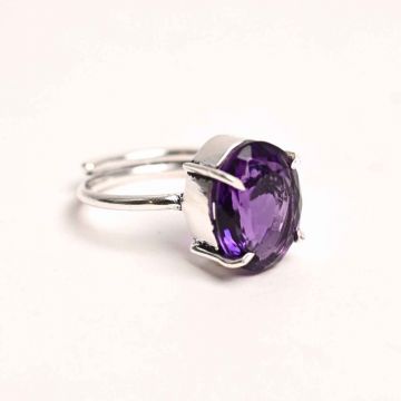 Inel Reglabil Argintiu cu Ametist Fatetat - Energie si Echilibru