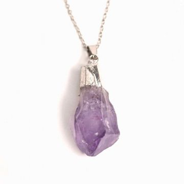 Colier argintiu cu varf de ametist brut , Calm si Eleganta Naturala