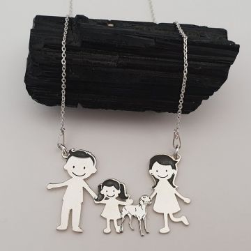 Lantisor Familie - 3 Membri cu Akita - Argint 925