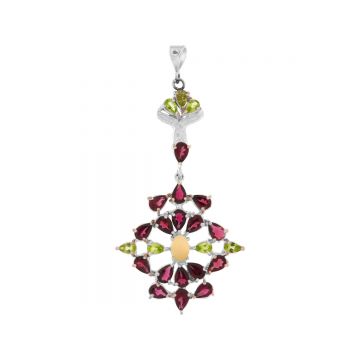Pandantiv realizat manual din argint, ornamentat cu pietre de labradorit si cuart verde, fatetate. Pietrele sunt naturale.