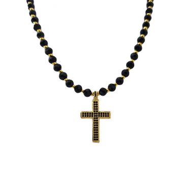 Colier unisex din inox, Promise, cu pandativ tip cruce, ambalat in cutie deosebita, Auriu/Negru