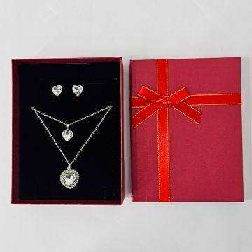 Set accesorii Feeling, lantisor cu cristale din zirconiu si cercei, in cutie eleganta, Argintiu
